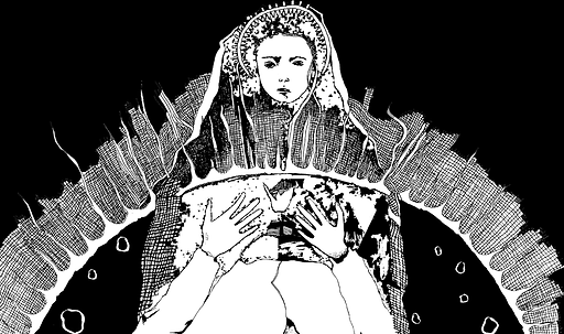 ‘Moonland’ experiments with ideas of place and narrative through its imagined landscapes and figures. With a range of influences, from Biblical stories to Southern Gothic to video games, I play on the similarities between lunar and desert landscapes in their isolating yet cosmic qualities. Through the central ‘pilgrim’ character, I try to draw the viewer into a series of interconnected images which visualise experiences of anxiety and disassociation.